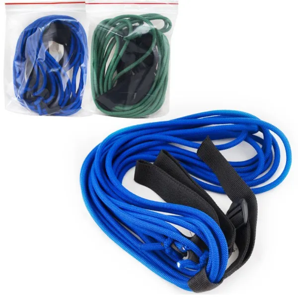 Длина 190 см. 4 резиновых жгута диаметром 8 мм в мягкой оплетке из полиамида.